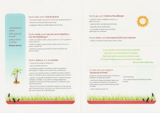 Programul va fi prezentat săptămânal, în avans, cu activități concrete.