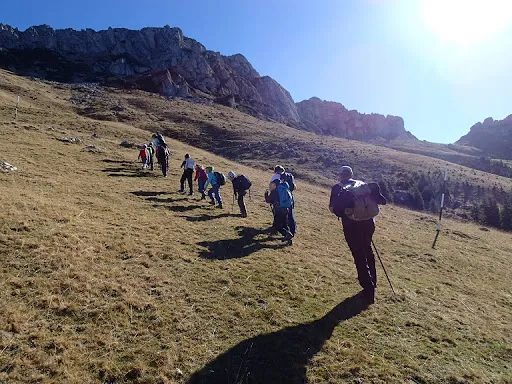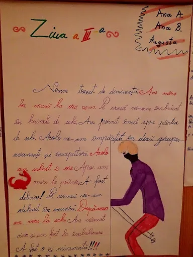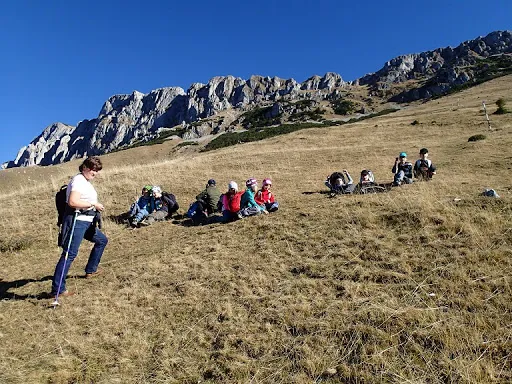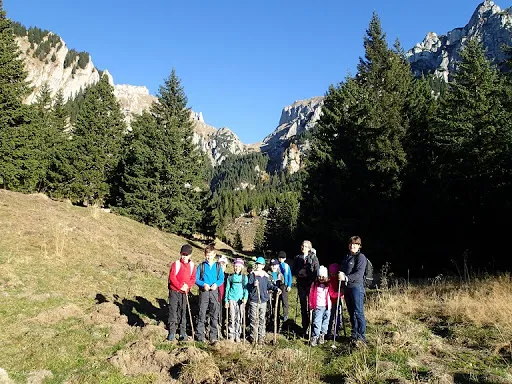 Vacanță, zile însorite de toamnă. Un prilej tocmai bun pentru o ascensiune montană, un plan pentru micii montaniarzi de la Boreal. Așadar cu rucsacii pregătiți, cu bagajele în microbuz pornim spre munte. Poposim la Azuga, gazda noastră pentru schi și drumeții montane. Lăsăm bagajele și “inspectăm” pârtiile de schi, pe care le găsim ademenitoare pentru jocurile noastre. A doua zi însă trecem la fapte montane. Echipati pentru o nouă ascensiune, pornim din Moieciu de Sus spre Bucegi, culmea vestică. Atacăm Valea Bângăleasa pe care nu o slăbim din ochi până ce nu ne vedem ieșiți la golul alpin de sub abrupturile Grohotișului. Iar aici ne lăsăm furați de încântătoarele priveliști ce ni se aștern la orizont. Străbatem poteca de sub Grohotiș, apoi de sub Gușanu. Poienile ne îndeamnă la cât mai multe popasuri pentru binemeritate pauze de odihnă și pentru a nu scăpă niciun peisaj din vedere. La Stâna din Gușanu servim masa de prânz cărată de fiecare în rucsac și udată cu ceai fierbinte din belșug, din termos. Poiana Gaura este ultimul obiectiv al traseului nostru, după care ne lăsăm pe Valea Șimon. Aproape de Monumentul Militarilor Israeliei ne așteaptă microbuzul ce ne duce obosiți, dar încântați, înapoi la Azuga. Iar ultima zi o lăsăm pentru a bate mingea în poieni, înainte de a ne întoarce acasă.